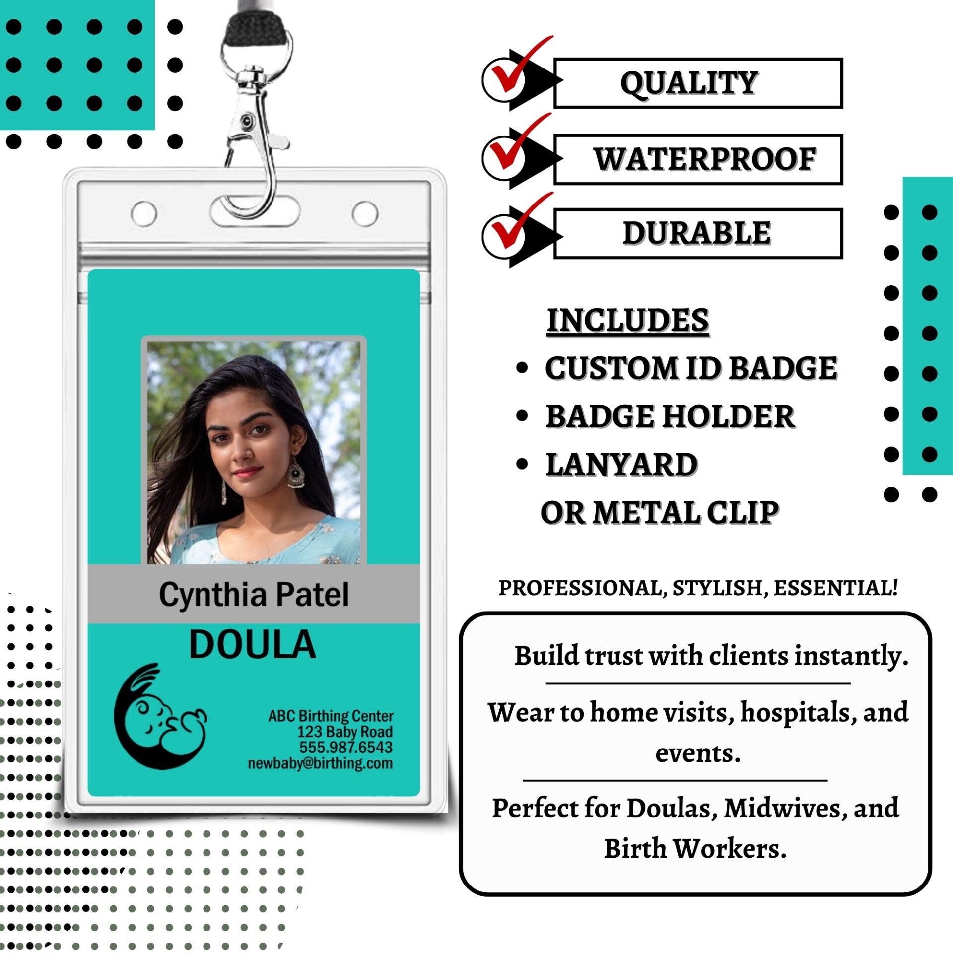Enhance your professional image with a Custom Doula ID Badge designed with durability, clarity, and style. This high-quality badge features your name, title, and business branding, ensuring clients recognize you as a trusted birth support professional. Each badge comes with a waterproof and durable holder, plus your choice of a lanyard or metal clip for easy wear. Whether attending births, consultations, or workshops, this ID badge adds credibility and professionalism to every client interaction.